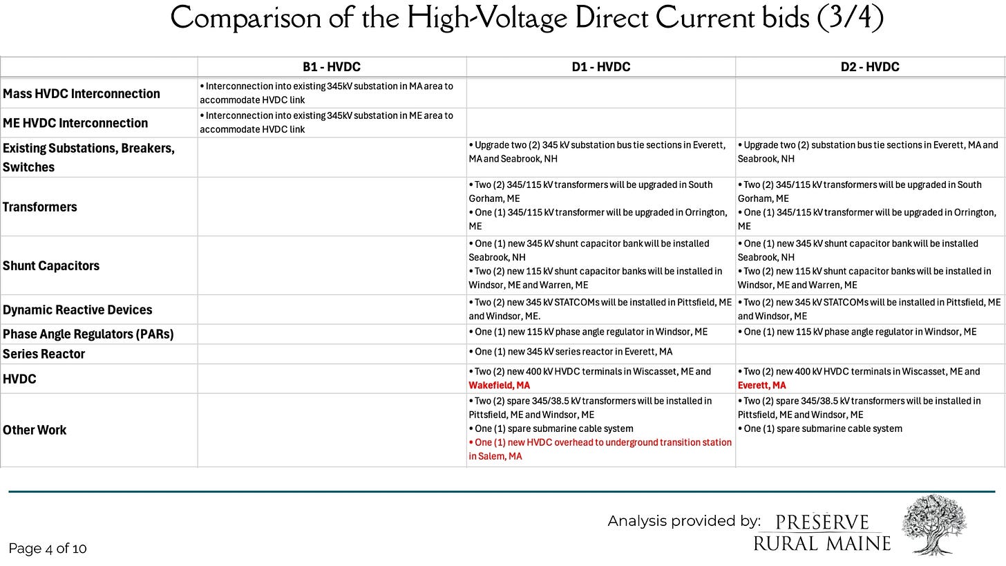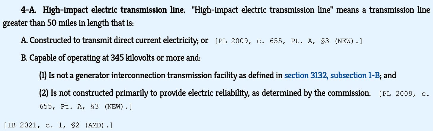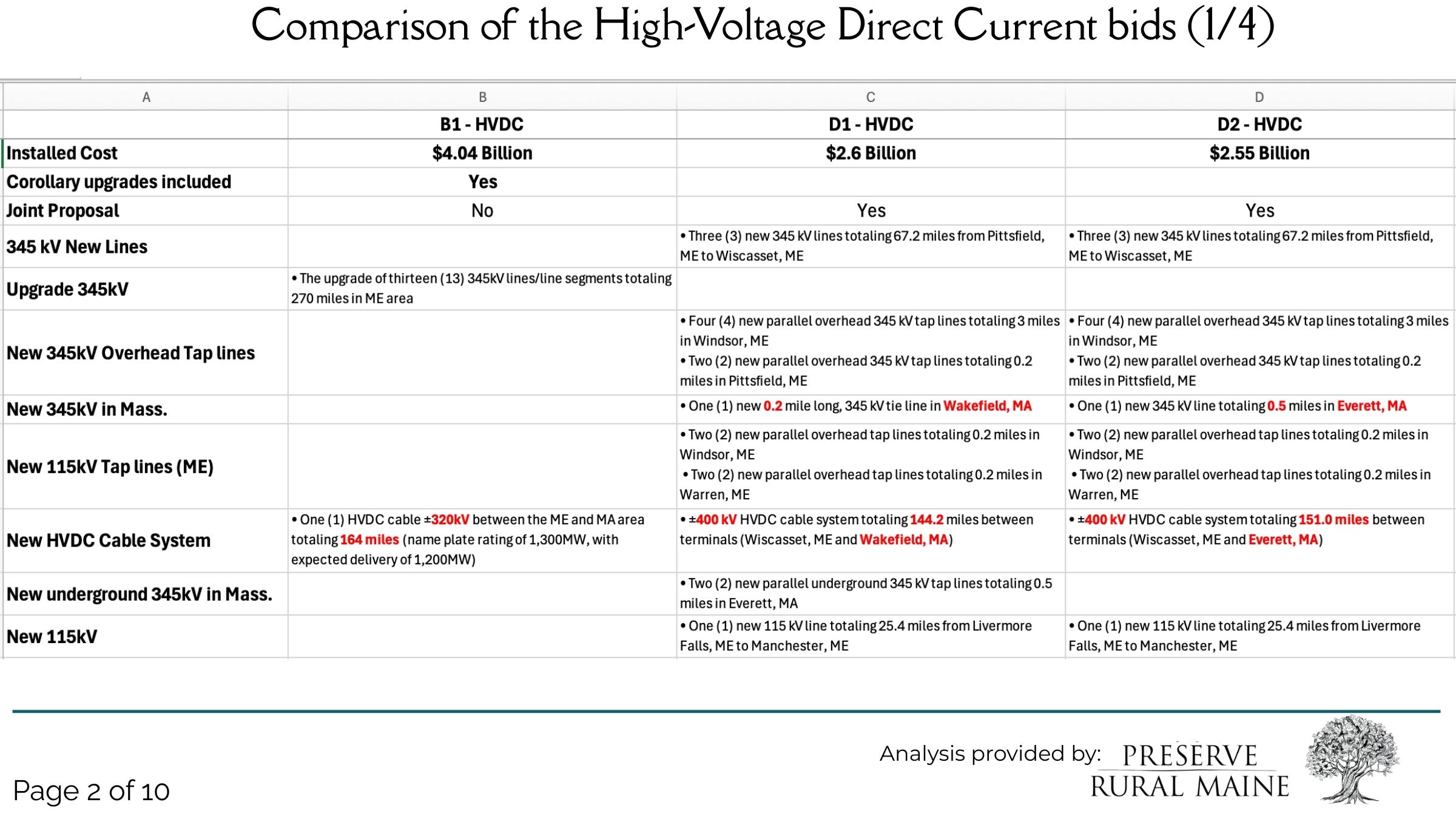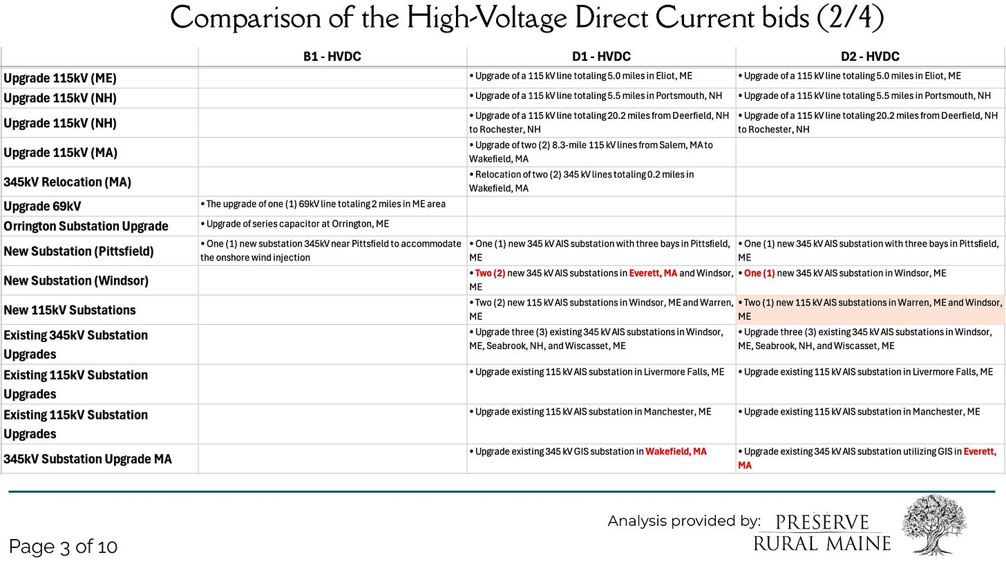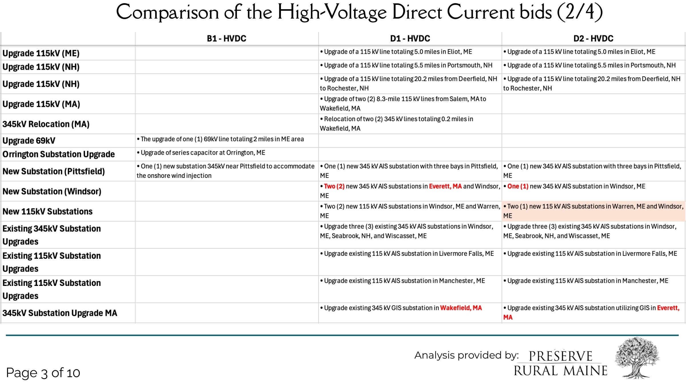 Look at the line lengths in miles (highlighted in red in several places.) If they are less than 50 miles, it’s not a high-impact transmission line according to Maine legislation. Are they trying to get around this law by breaking up the lines into shorter segments?