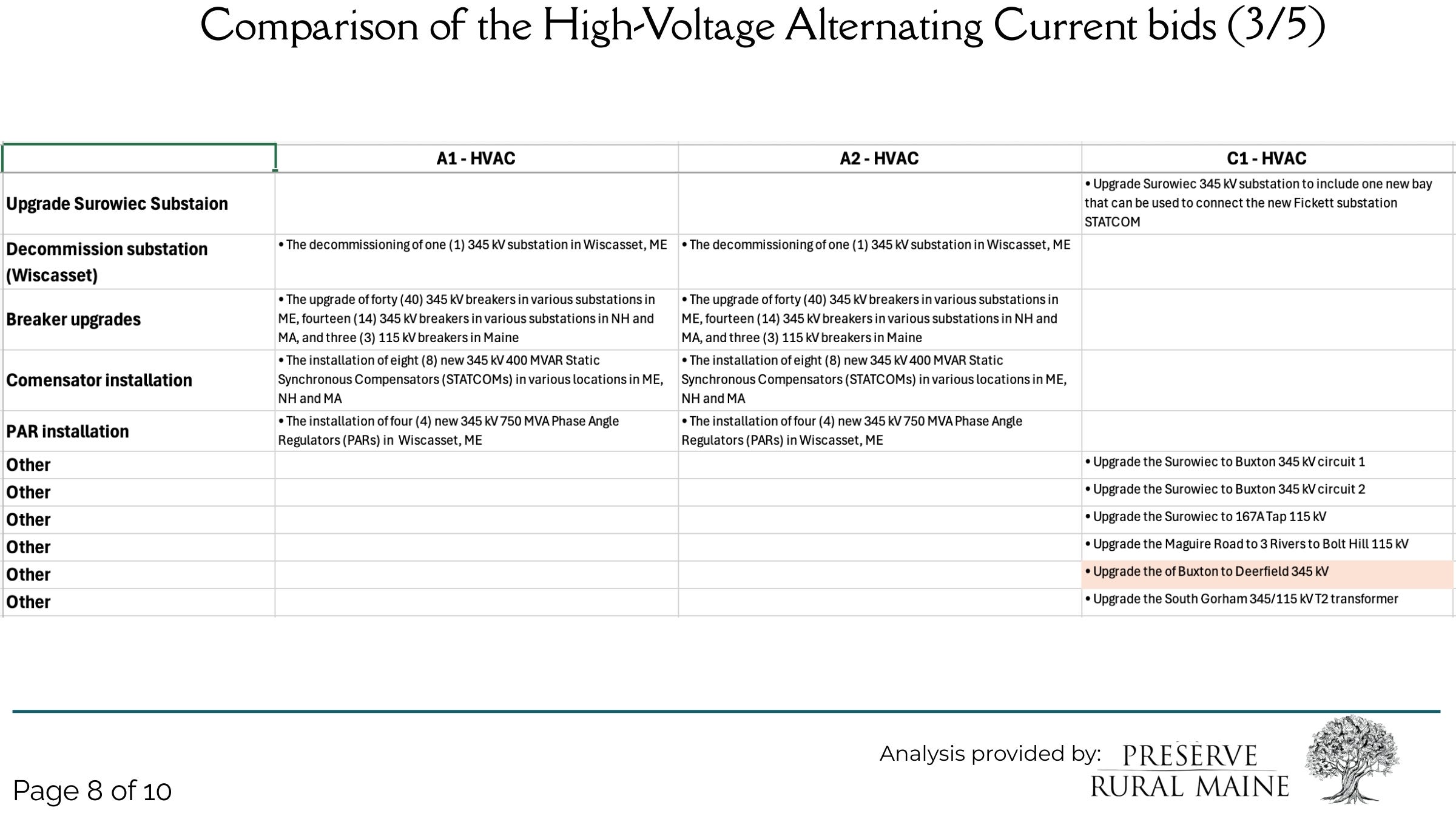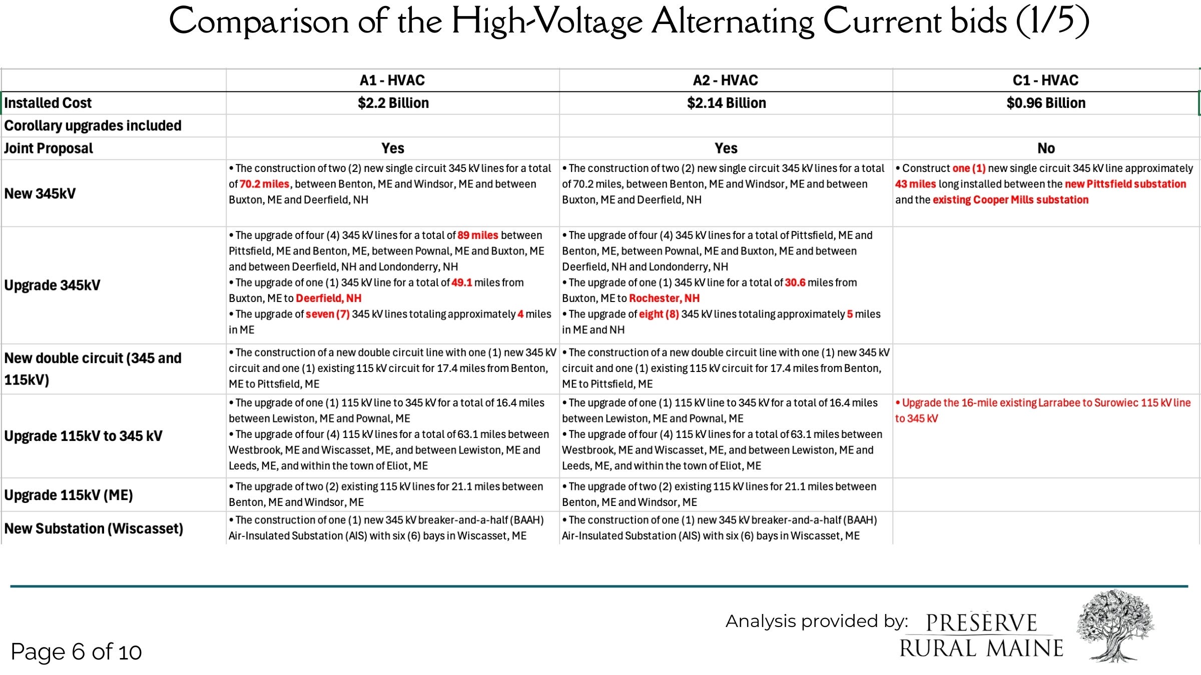 The lowest bid, C1, has a line length that is exactly the same as one LS Power proposed in 2023 (43 miles from Pittsfield to Coopers Mill. That is not the length of the existing CMP corridor.) Coincidence?