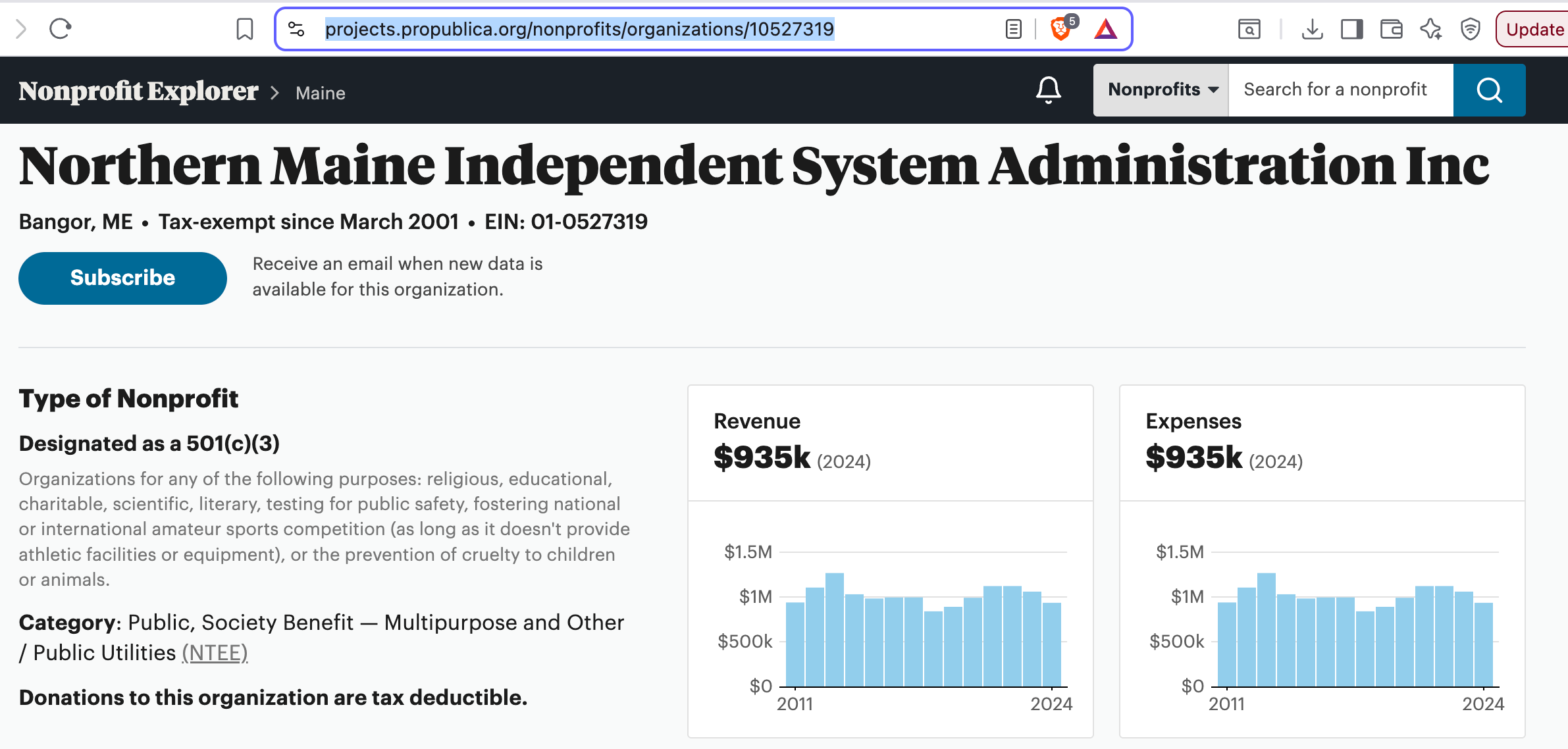 NMISA (Northern Maine Independent System Administrator) provides an interface for a small part of Northern Maine.