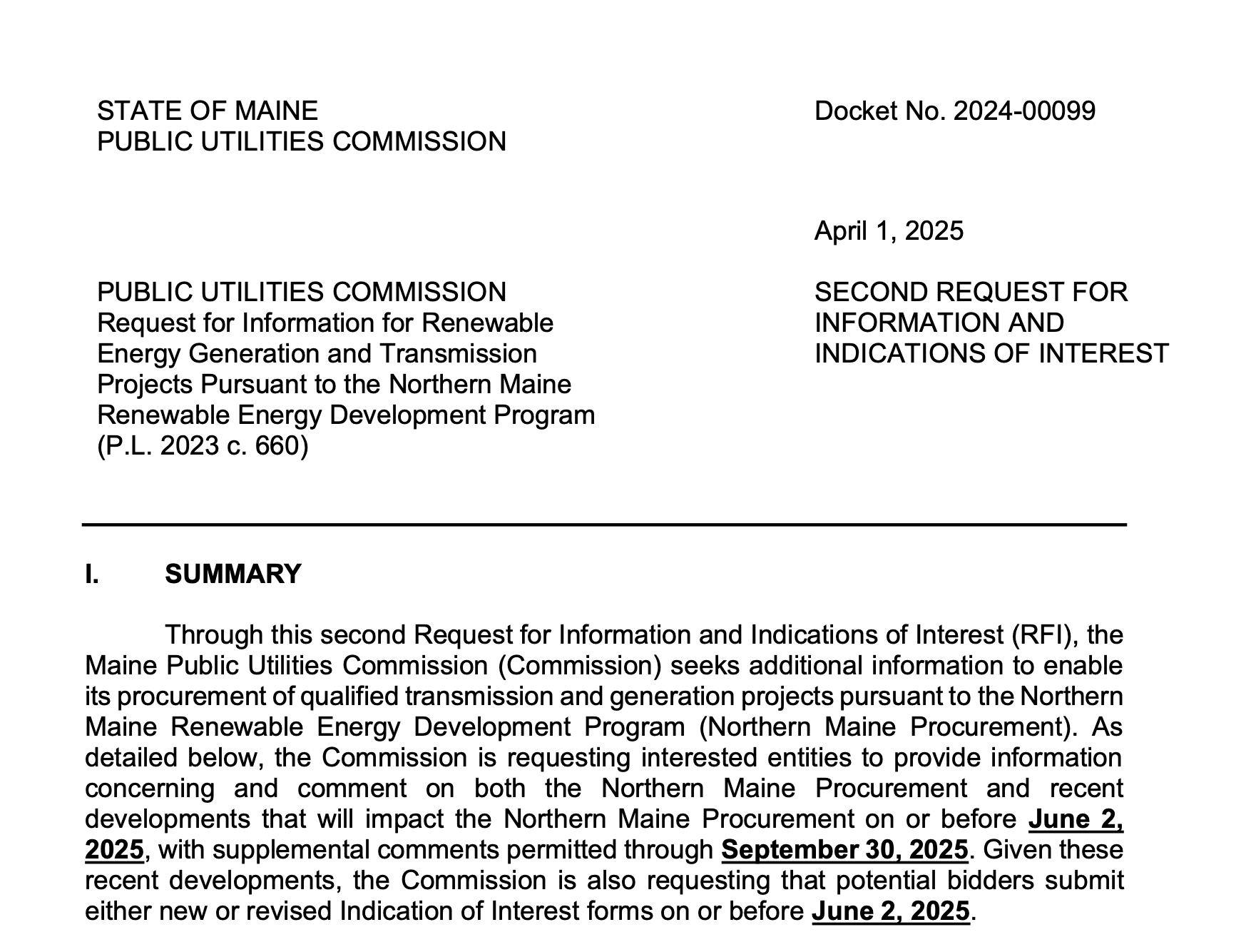 Yesterday (April Fool’s, not) the third request for information on the Northern Maine project was released.