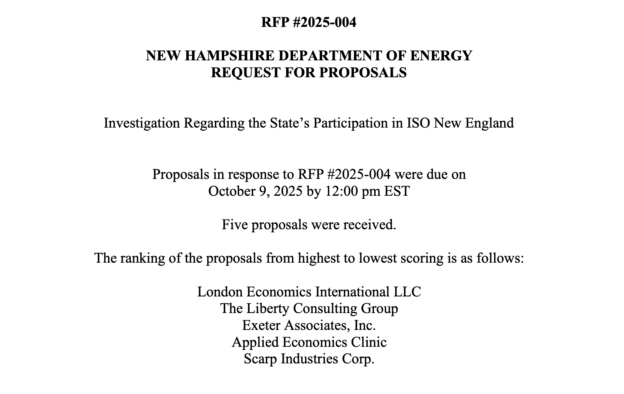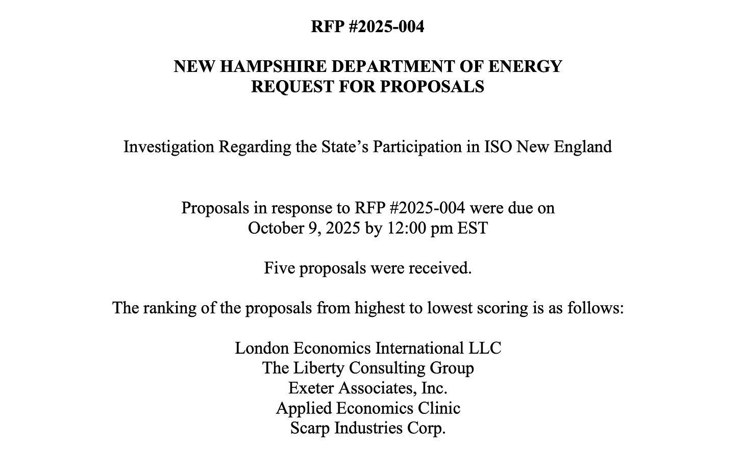 And the list of proposals received, by name, and their rank.