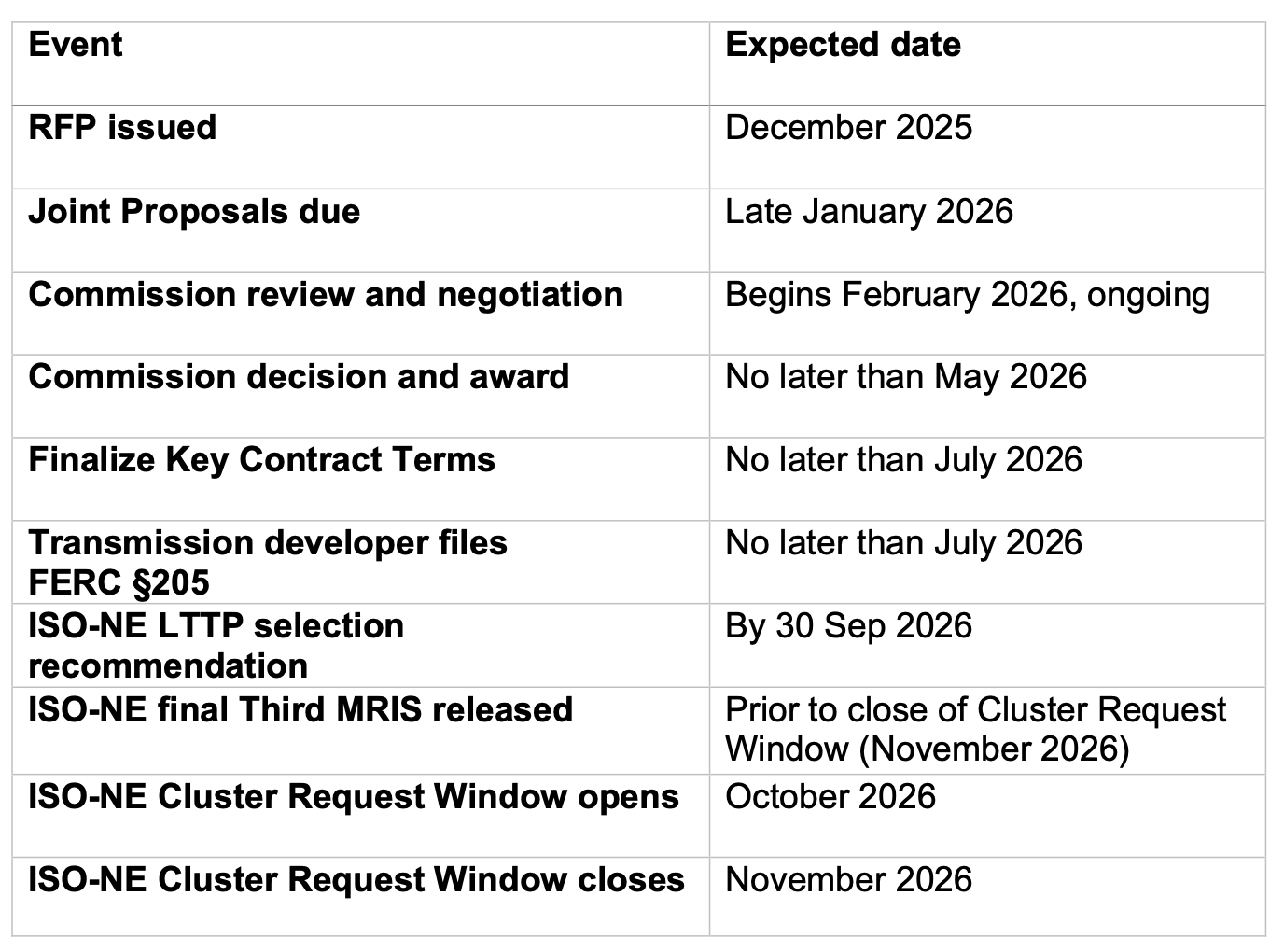 September 2026: ISO-NE RFP selection for Longer Term Transmission Upgrades